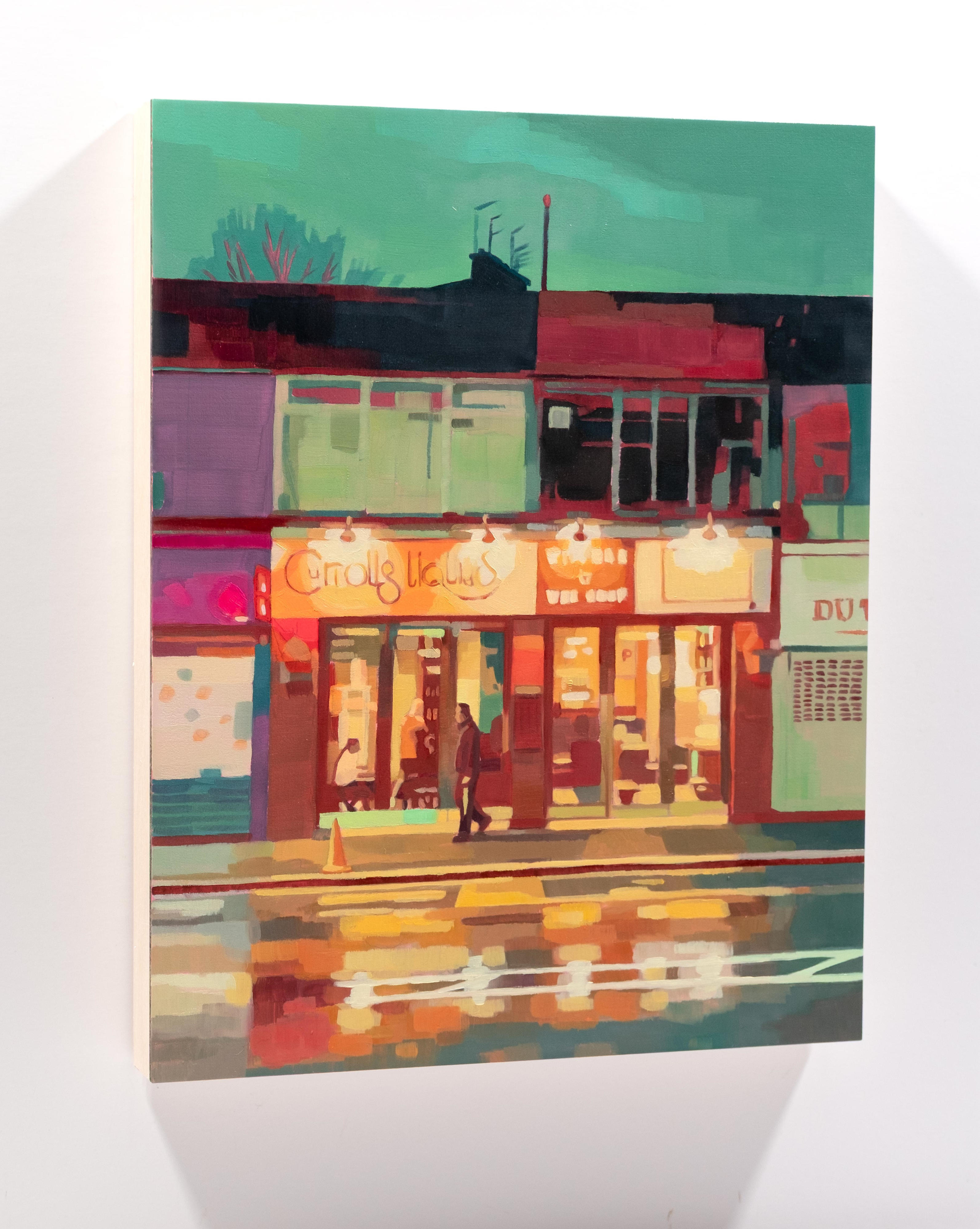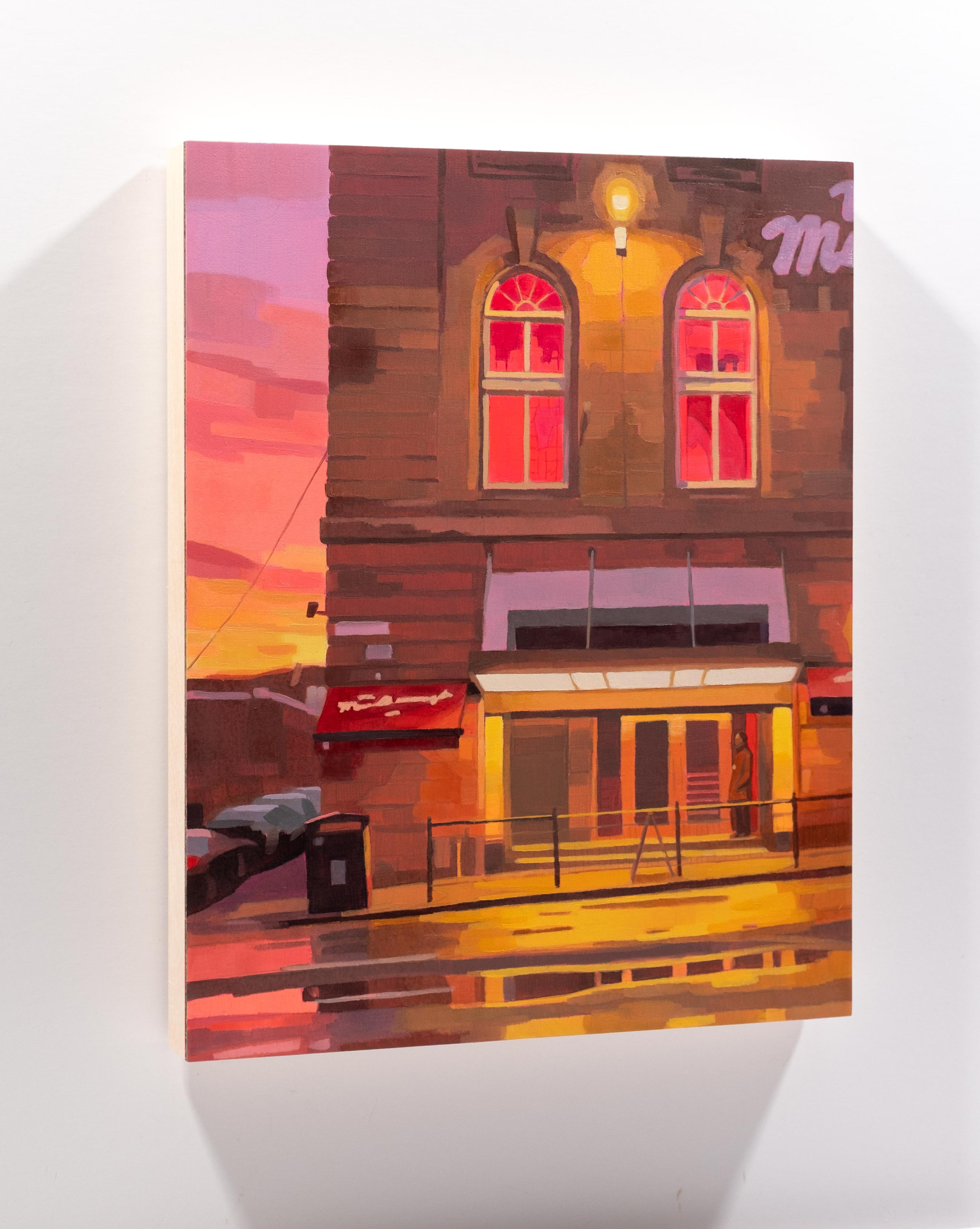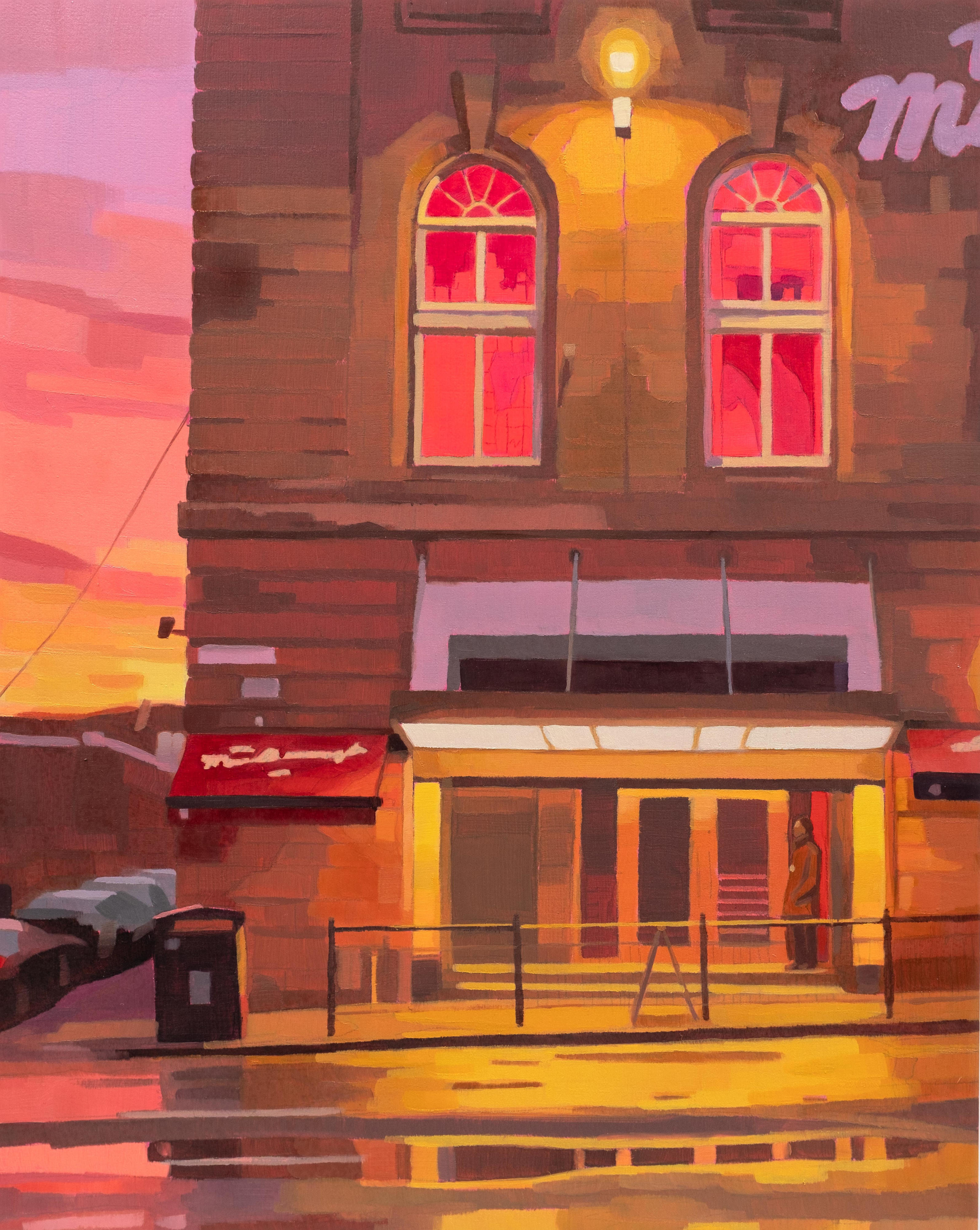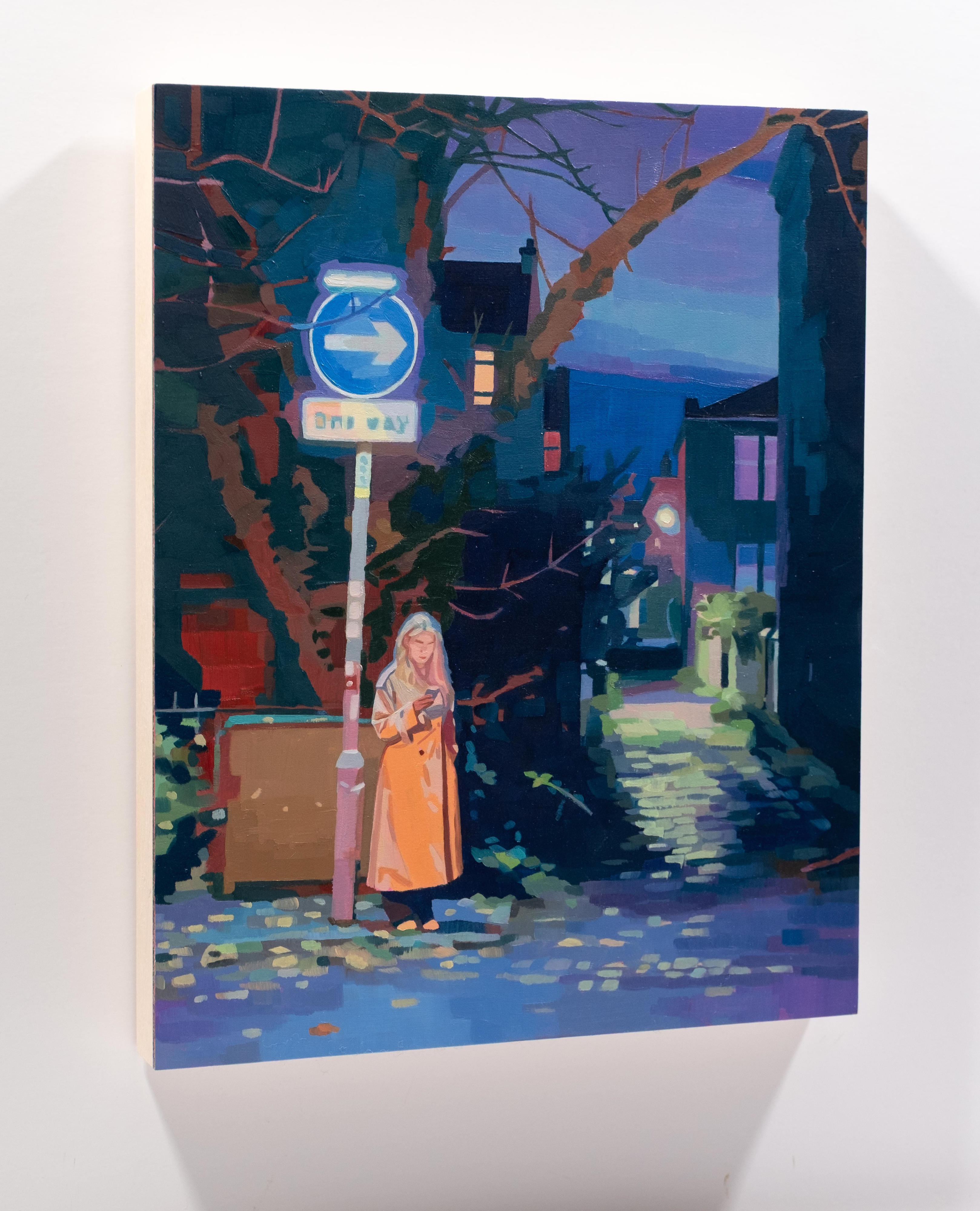 Calum’s latest work extends his exploration of the figure, light, and movement. ‘Guiding Light’, a key piece from his previous series, serves as a bridge to these new works, where figurative elements dissolve into colour-filled cityscapes. In ‘City Embers’ 1 to 4, Stevenson draws from found images and imagination to craft scenes that capture the fleeting glow of urban life. These smaller works embrace expressive mark-making and luminous colour to suggest figures immersed in the afterglow of a city at night. This series marks the start of a new body of work exploring Scottish cityscapes, a continuation of past themes but also a step toward new possibilities. While rooted in his sensitivity to light and movement, these paintings expand his exploration of human experience, narrative and perception.