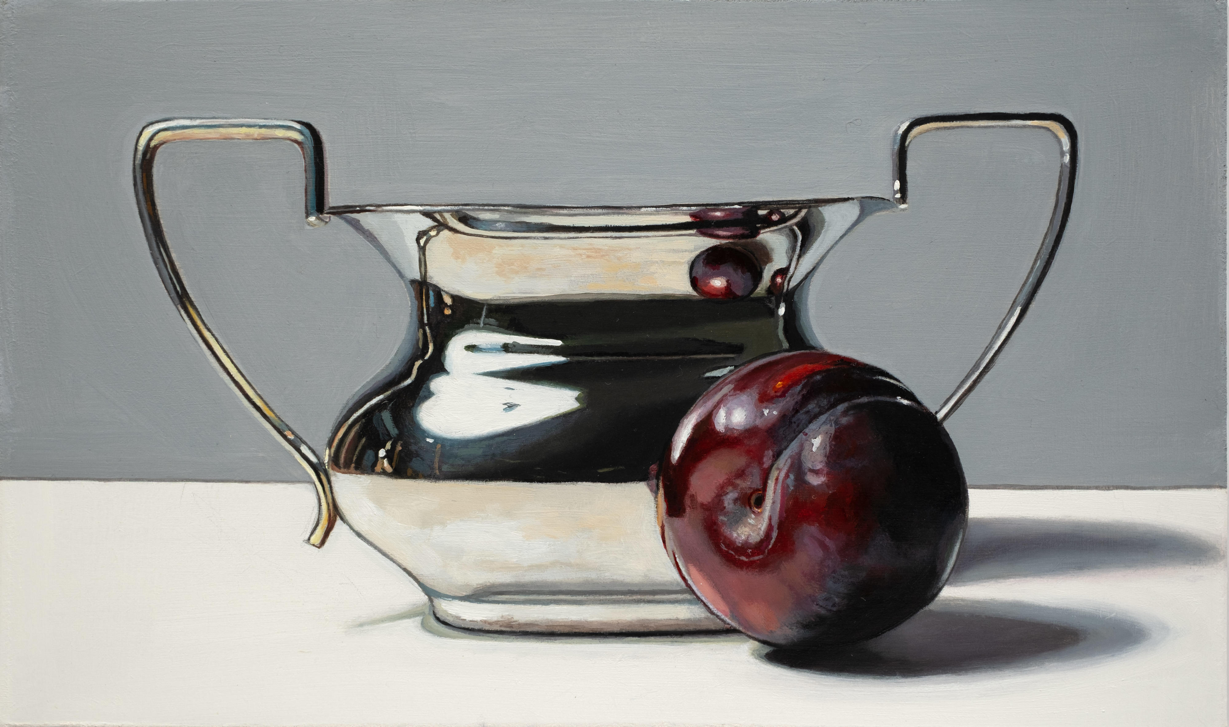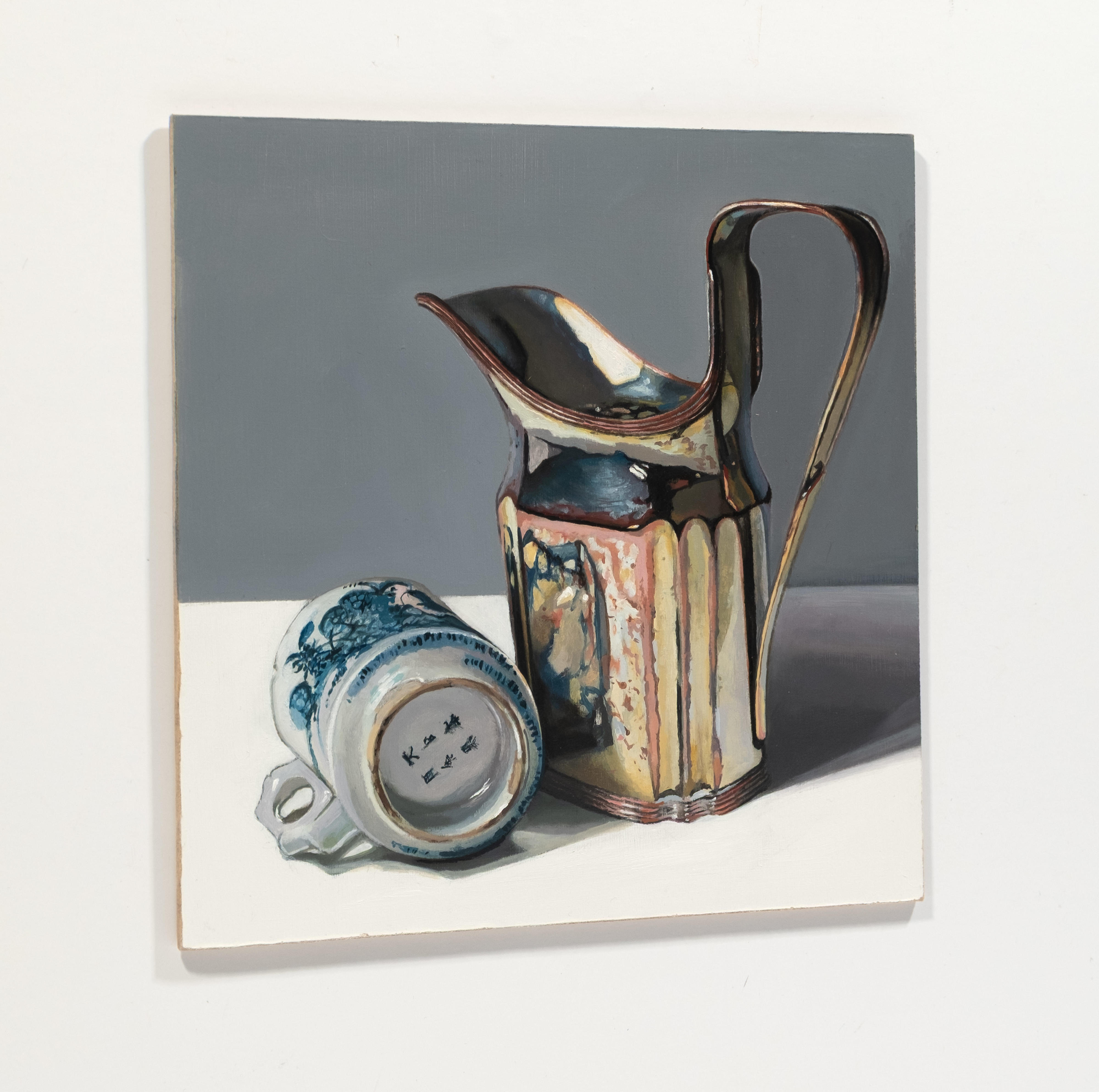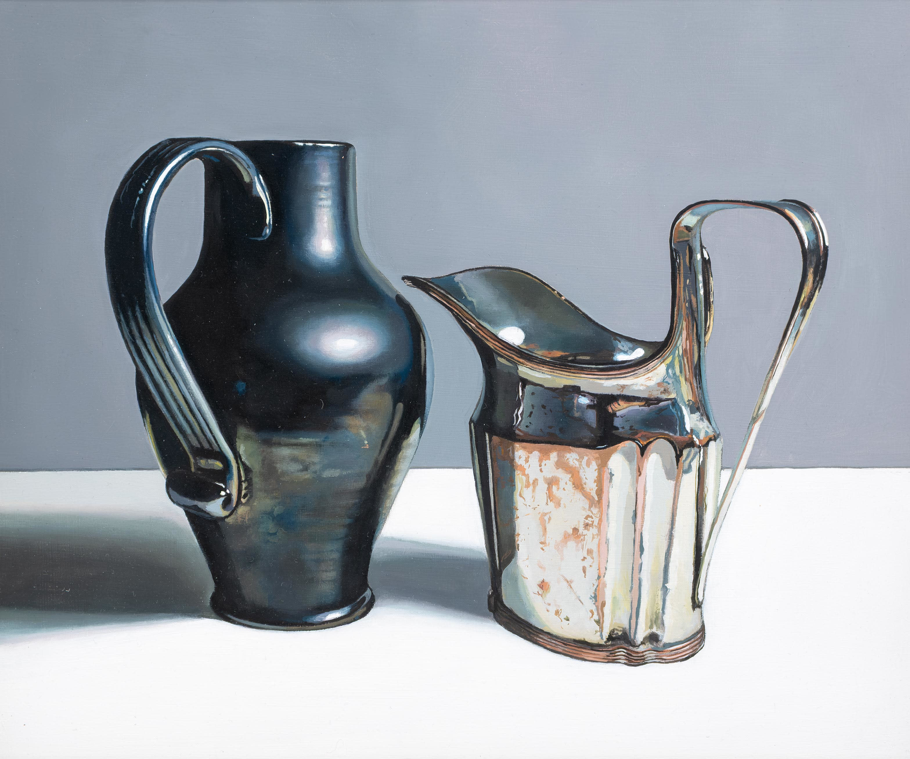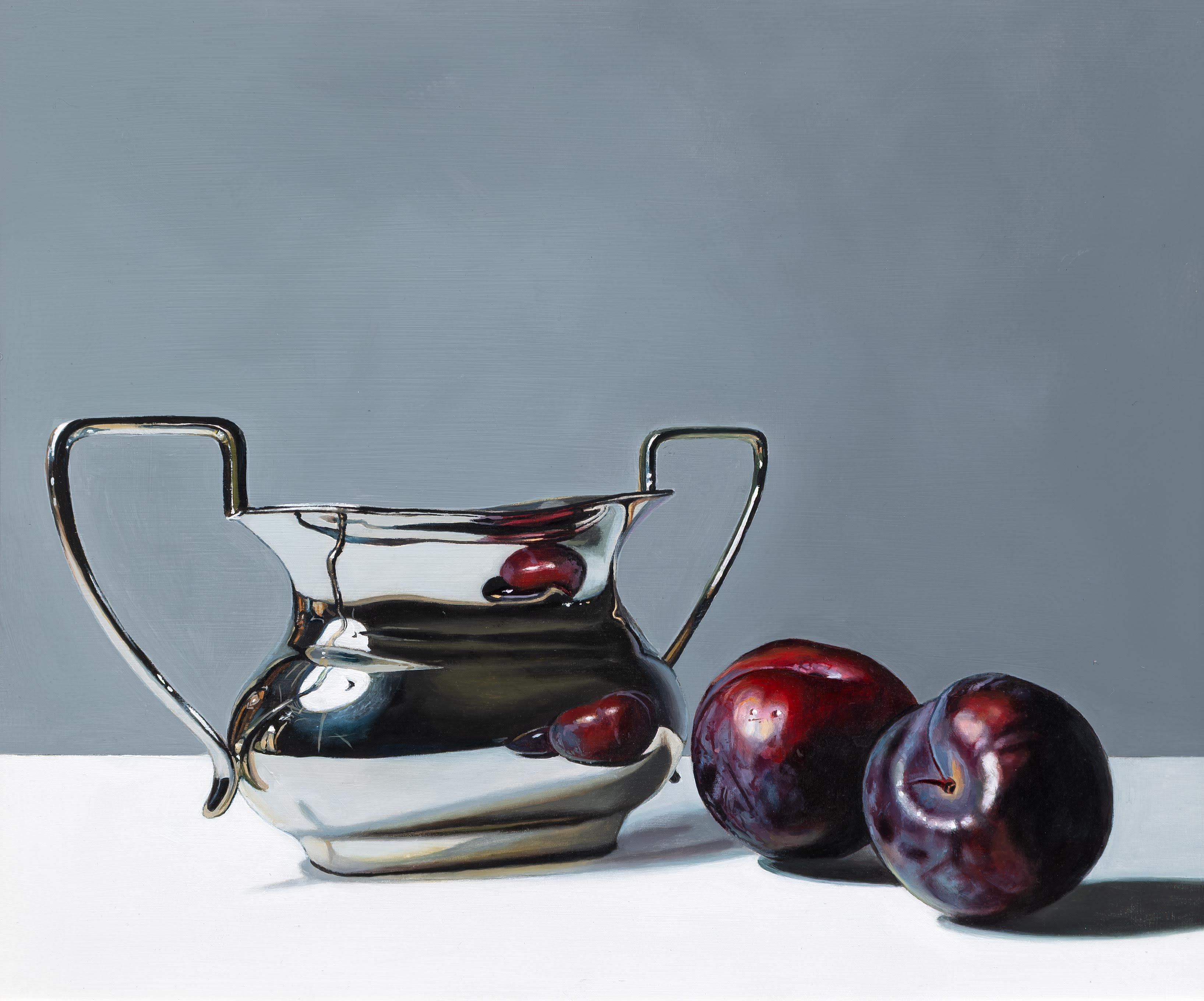Using recognisable subject matter Jane employs an intense realism in her paintings, whether painting still life or portraits, always depicting her subjects with clarity and depth. She is particularly fascinated by the everyday objects of the past – candle snuffers, earthenware bottles and antique books. Attracted to the subtle play of light and reflections across each surface, Jane’s paintings are both intimate studies of everyday objects and reminders of the great works of the Old Masters.