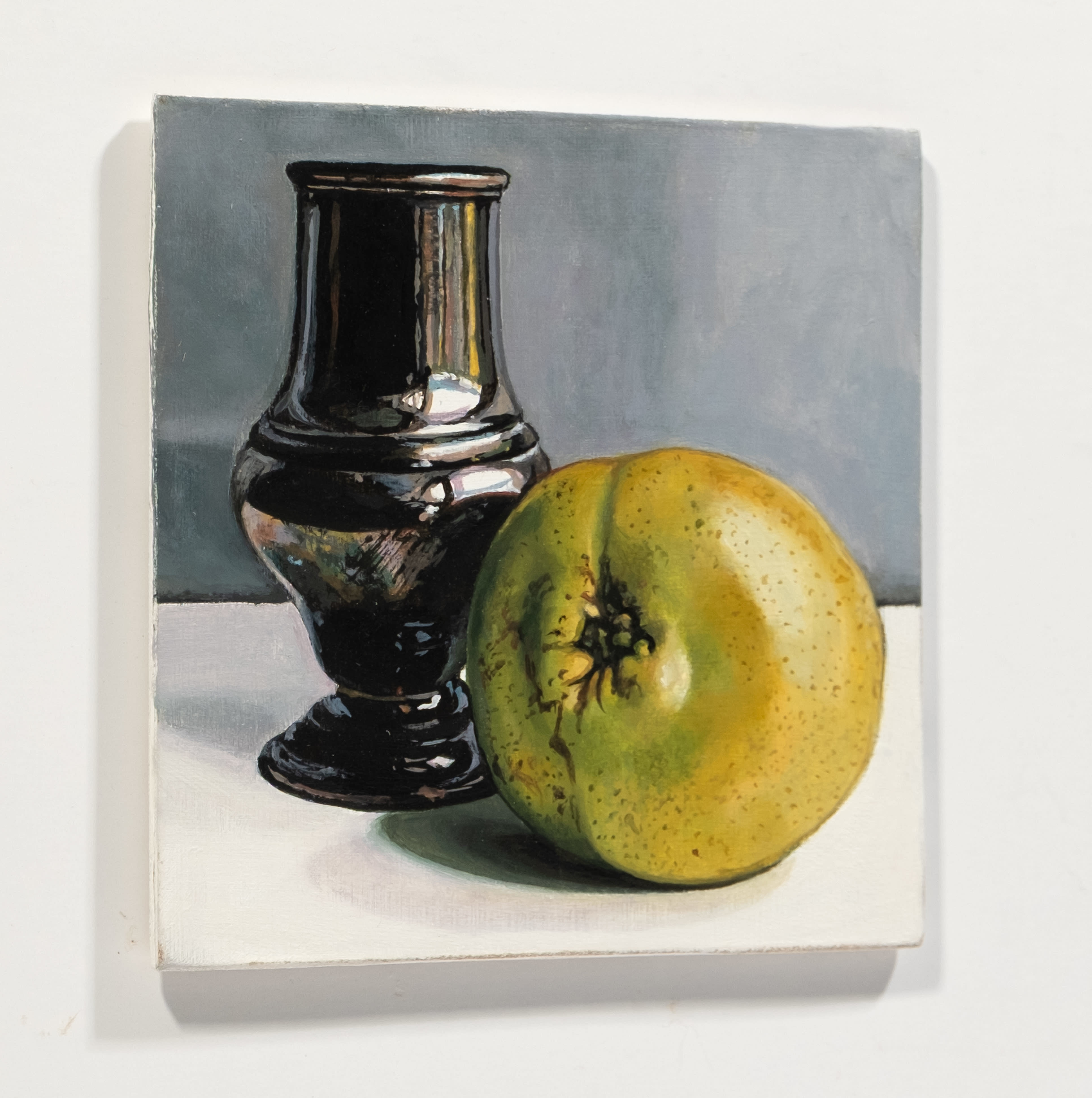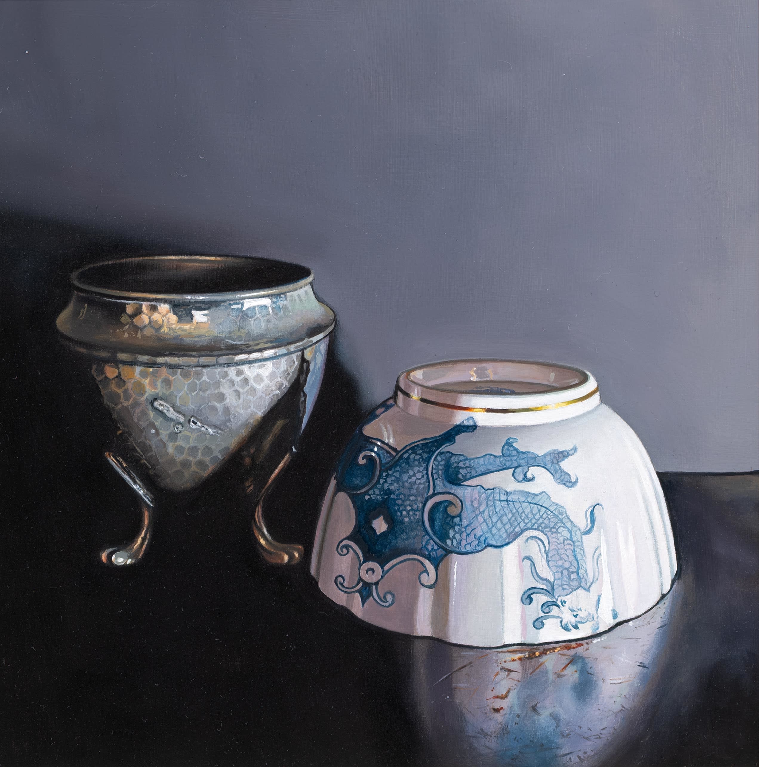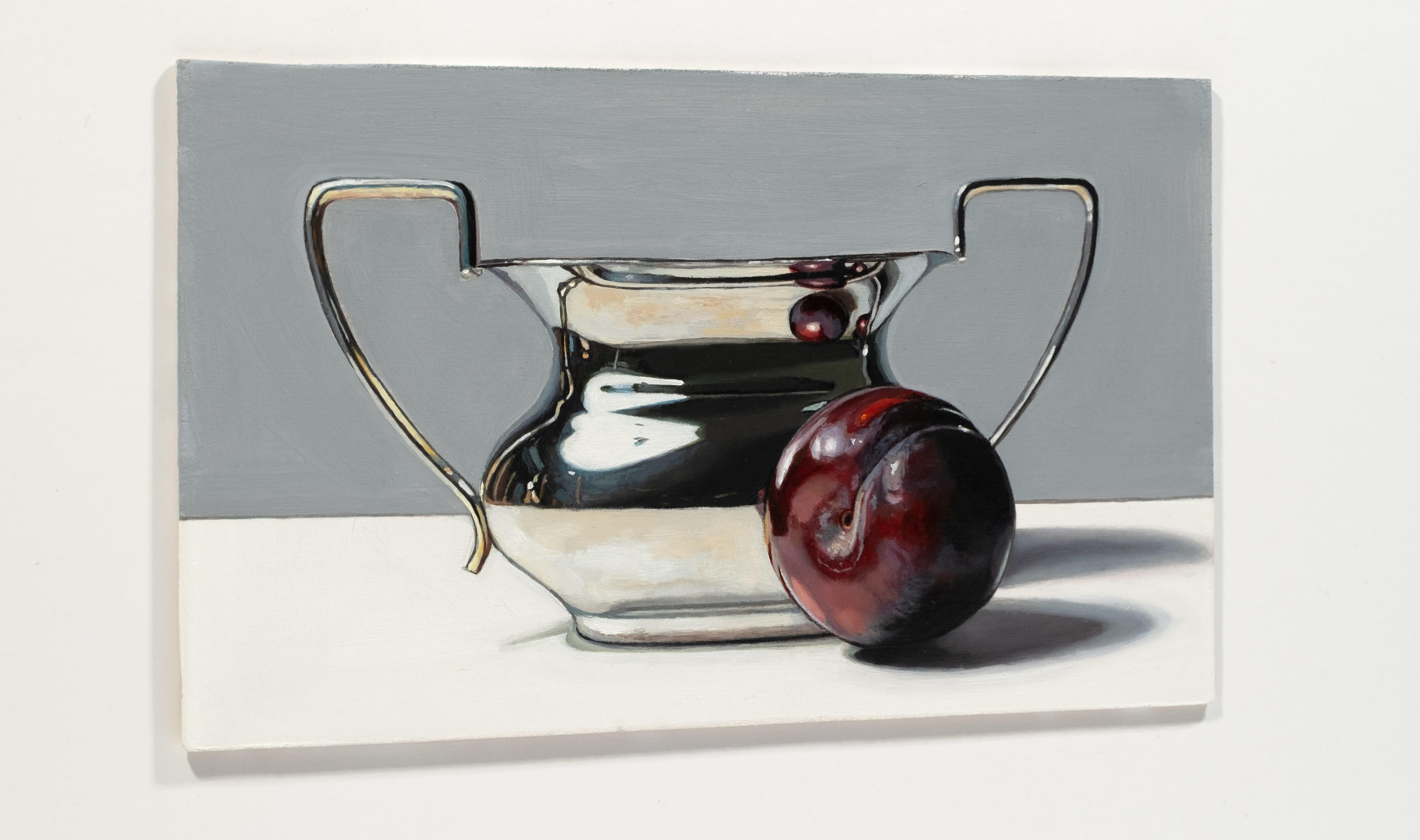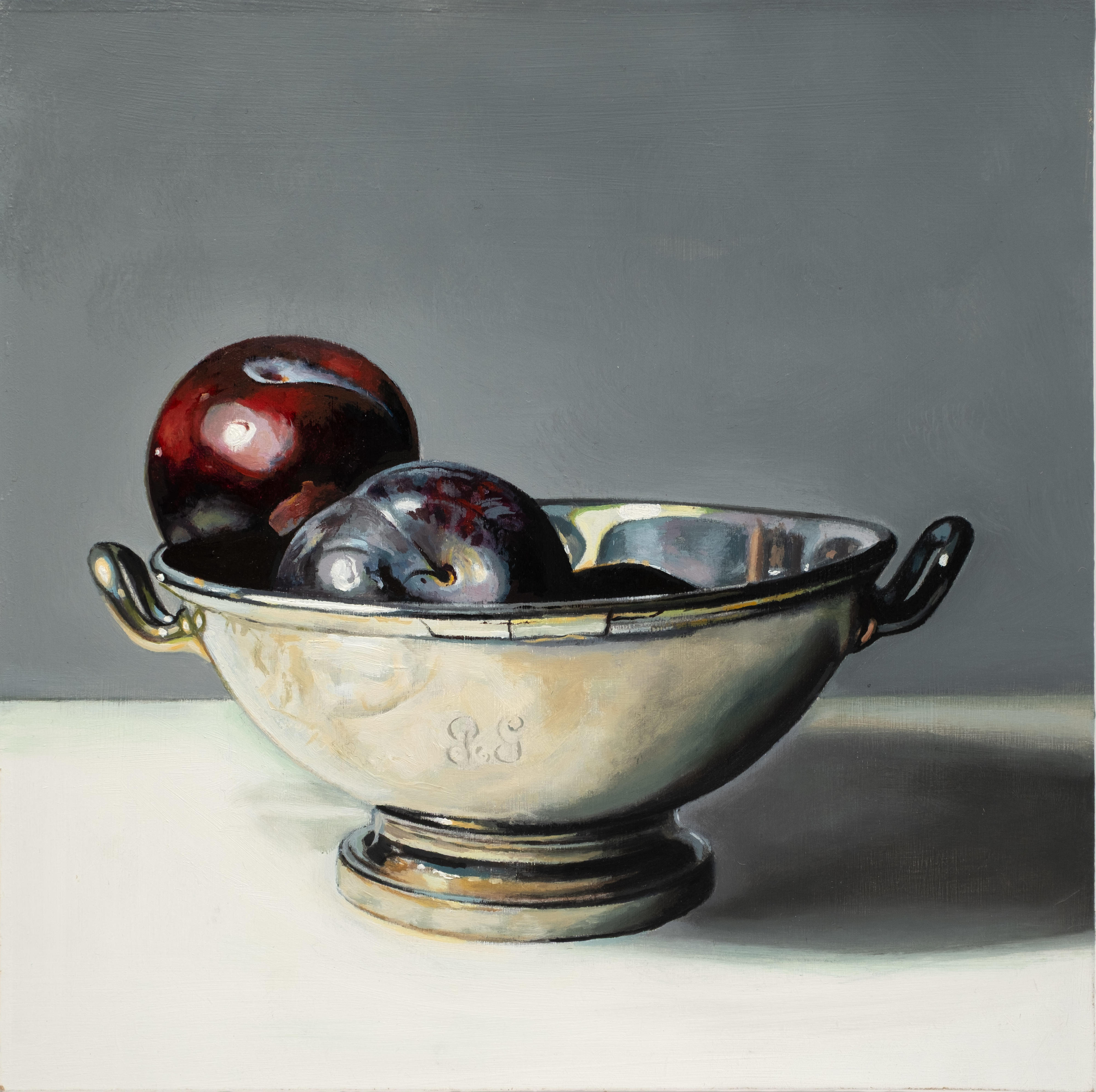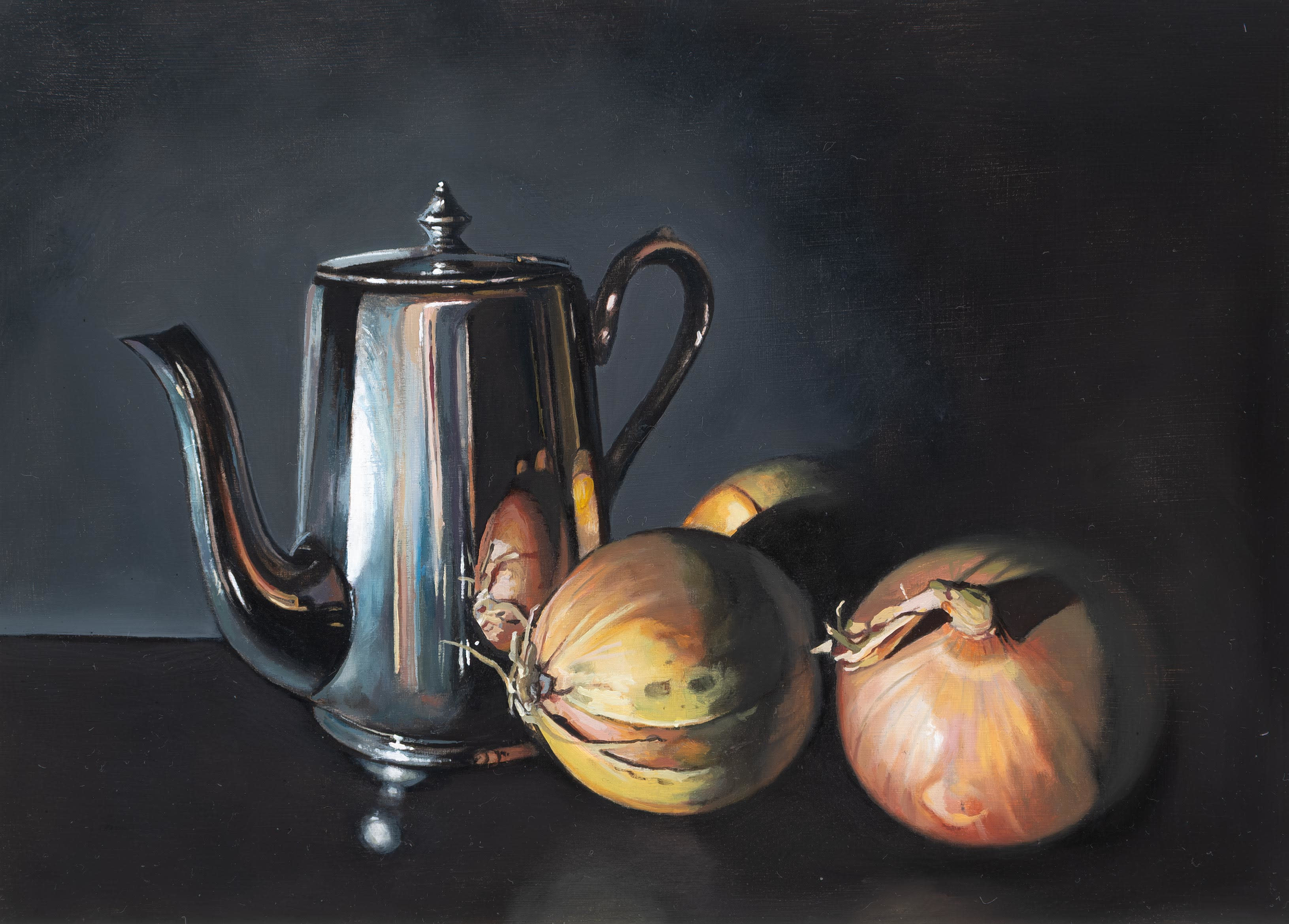 Using recognisable subject matter Jane employs an intense realism in her paintings, whether painting still life or portraits, always depicting her subjects with clarity and depth. She is particularly fascinated by the everyday objects of the past – candle snuffers, earthenware bottles and antique books. Attracted to the subtle play of light and reflections across each surface, Jane’s paintings are both intimate studies of everyday objects and reminders of the great works of the Old Masters.