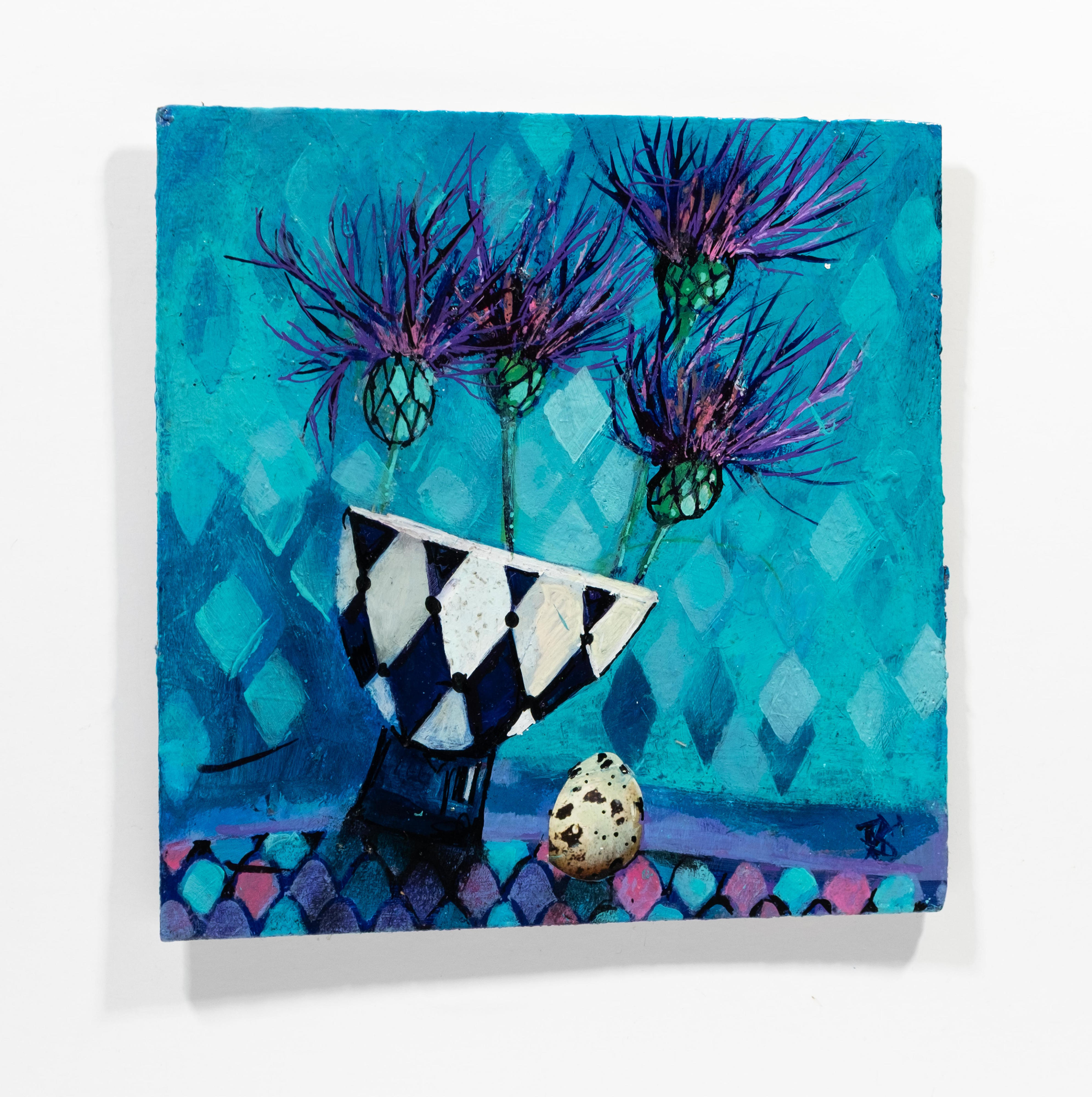 Mairi’s work is an infusion of her daily observations and an intuitive response to the memories attached to specific objects. She finds constant inspiration in her surroundings, be it domestic or in nature and enjoys the endless possibilities of balancing colour and shape within her compositions, often using flowers or fruit as visual accents within her work.