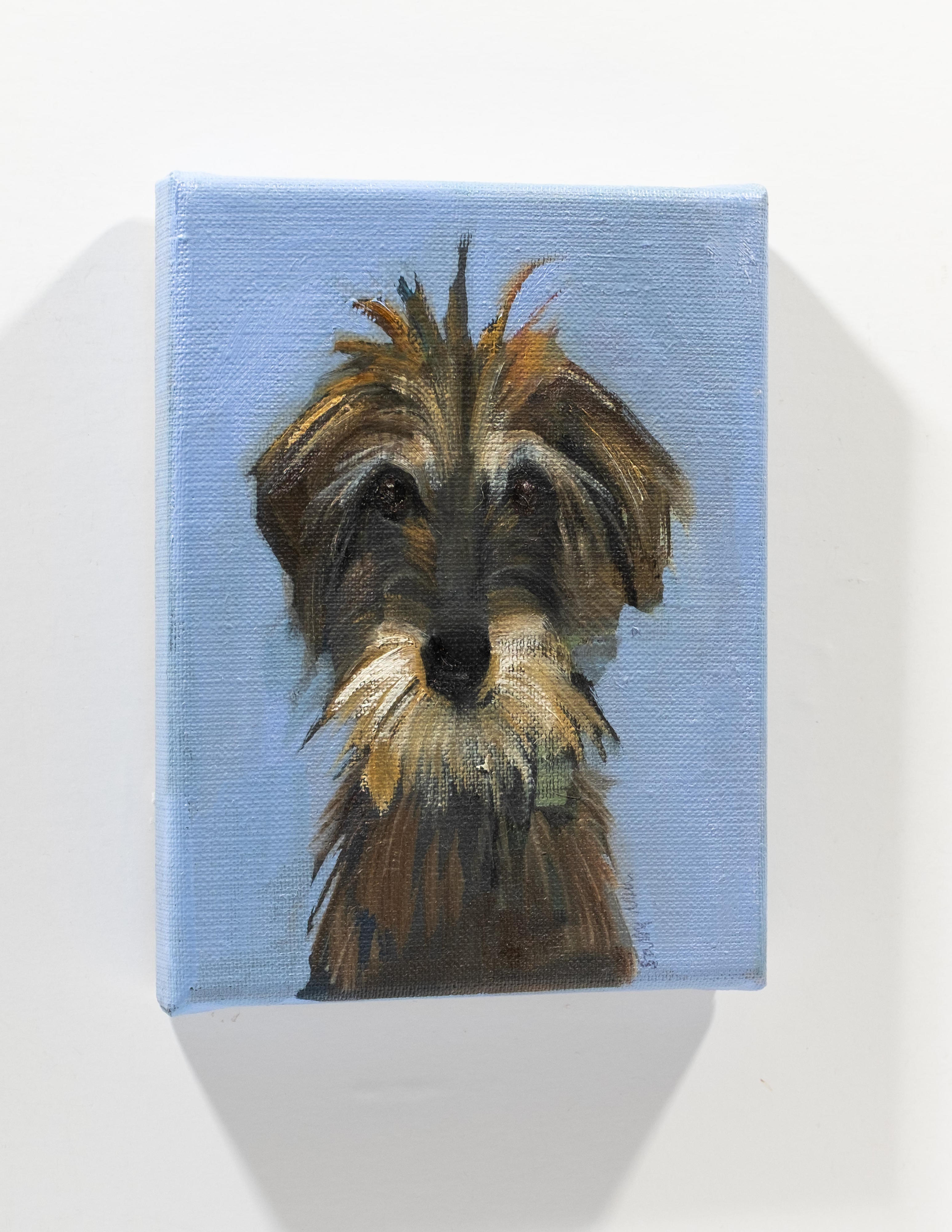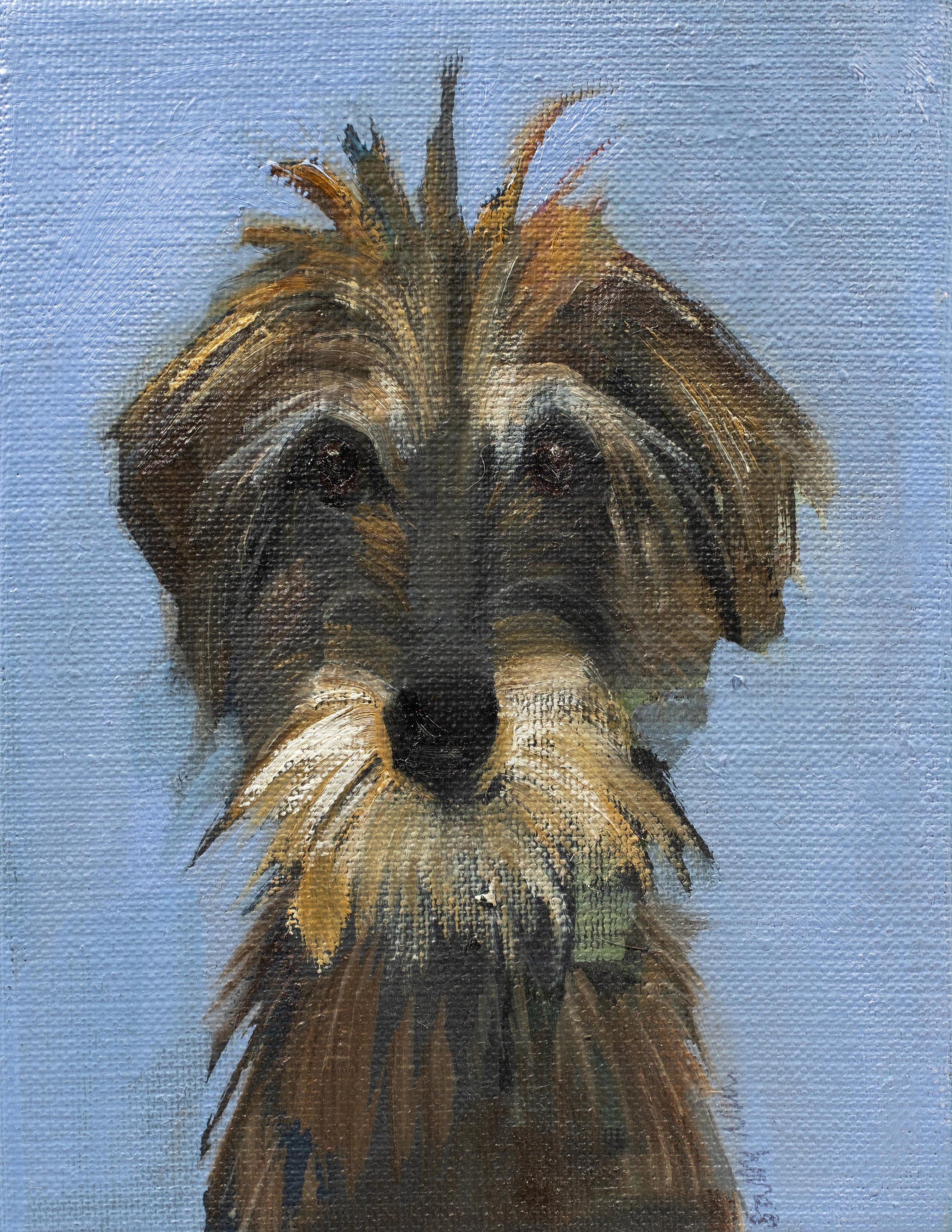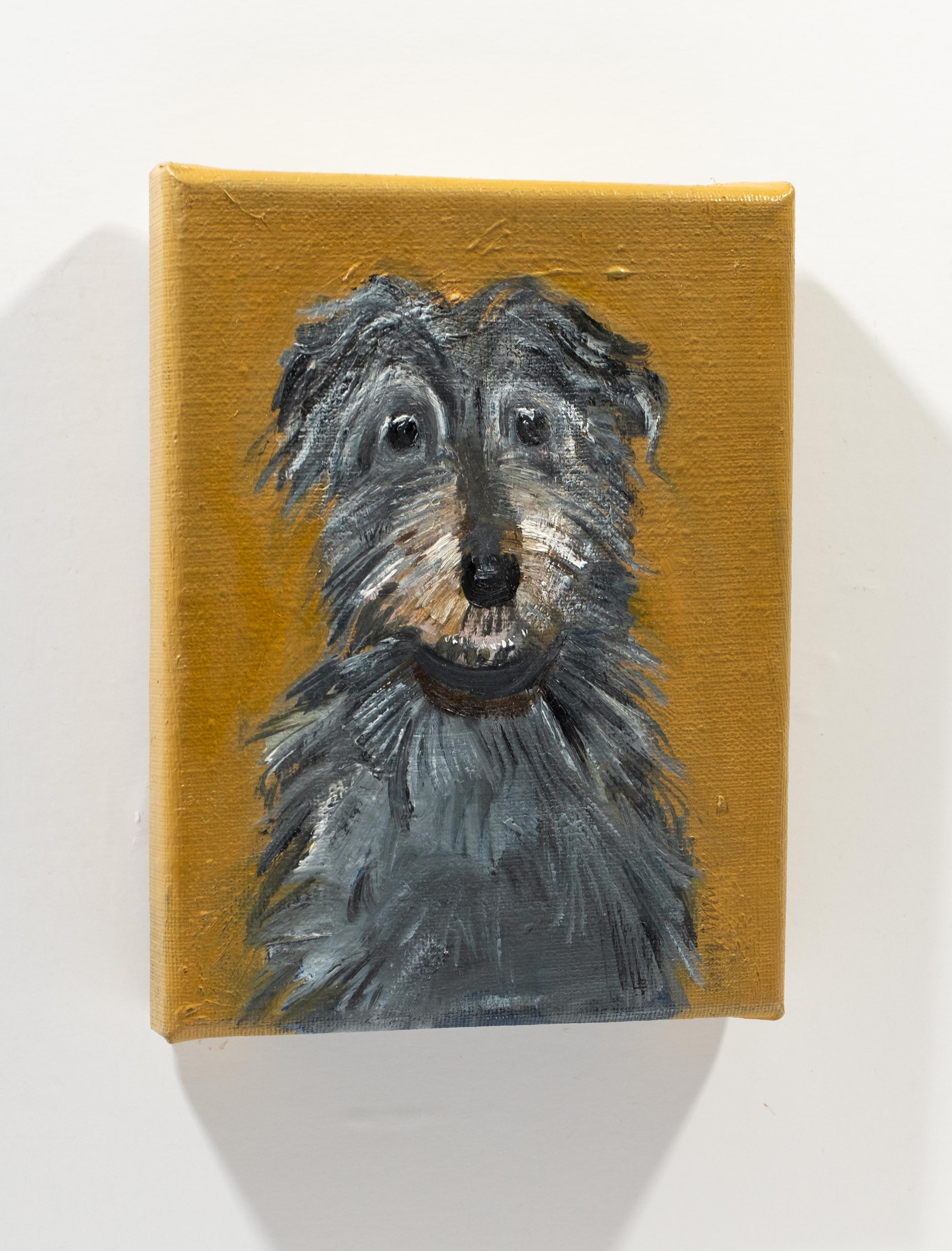 Sally Muir specialises in paintings of dogs and occasionally landscapes, rodents and people. With her dog paintings she approaches the subject as seriously as she would a person, attempting to convey the dog through a non-illustrative mark making process.
