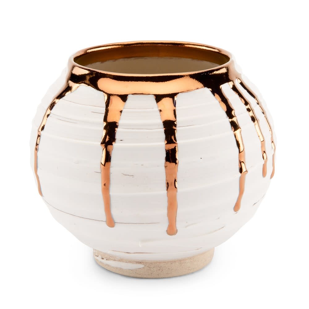 Crackle Textured Moon Jar with Copper Lustre