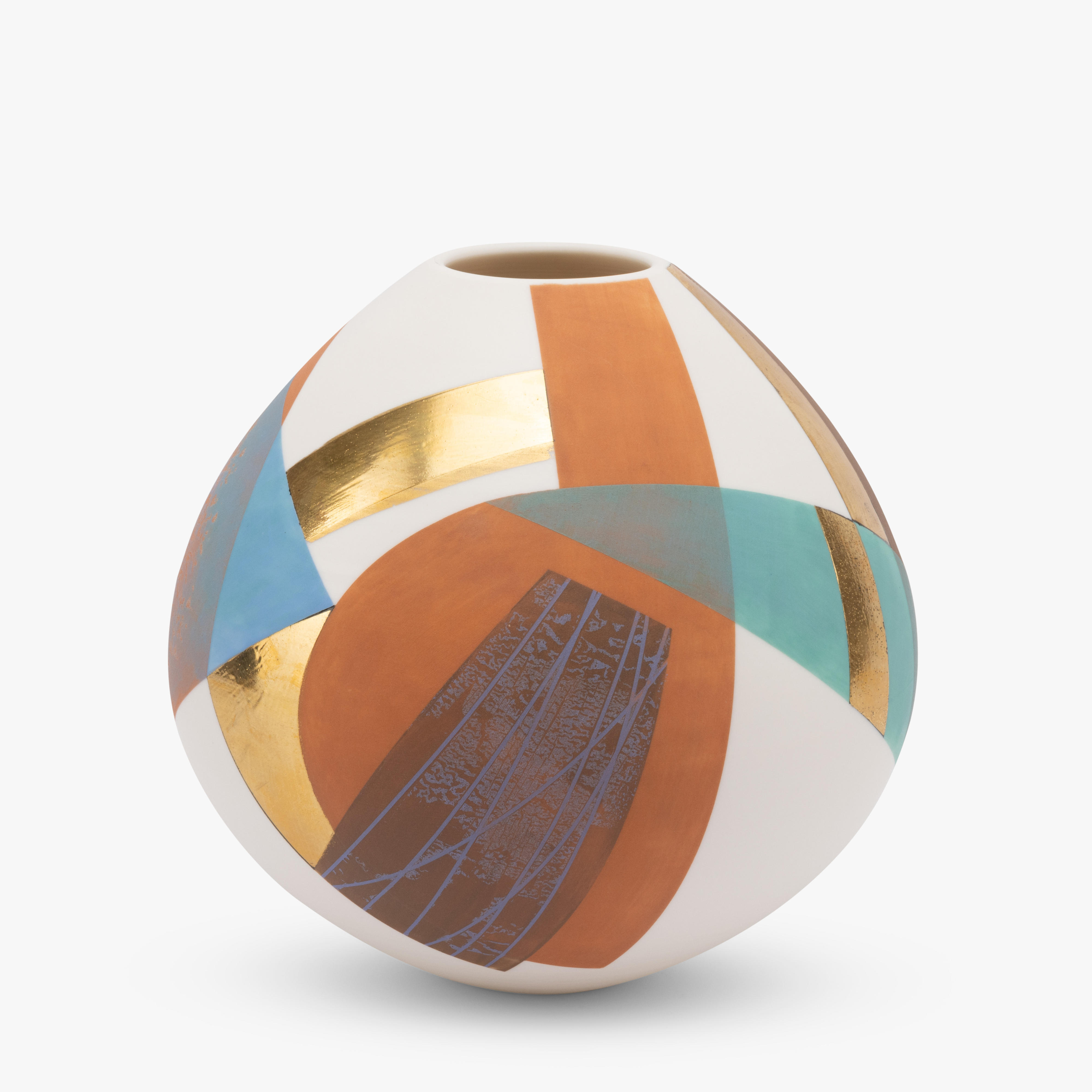 Small Narrow Neck Pot with Orange, Turquoise and Gold