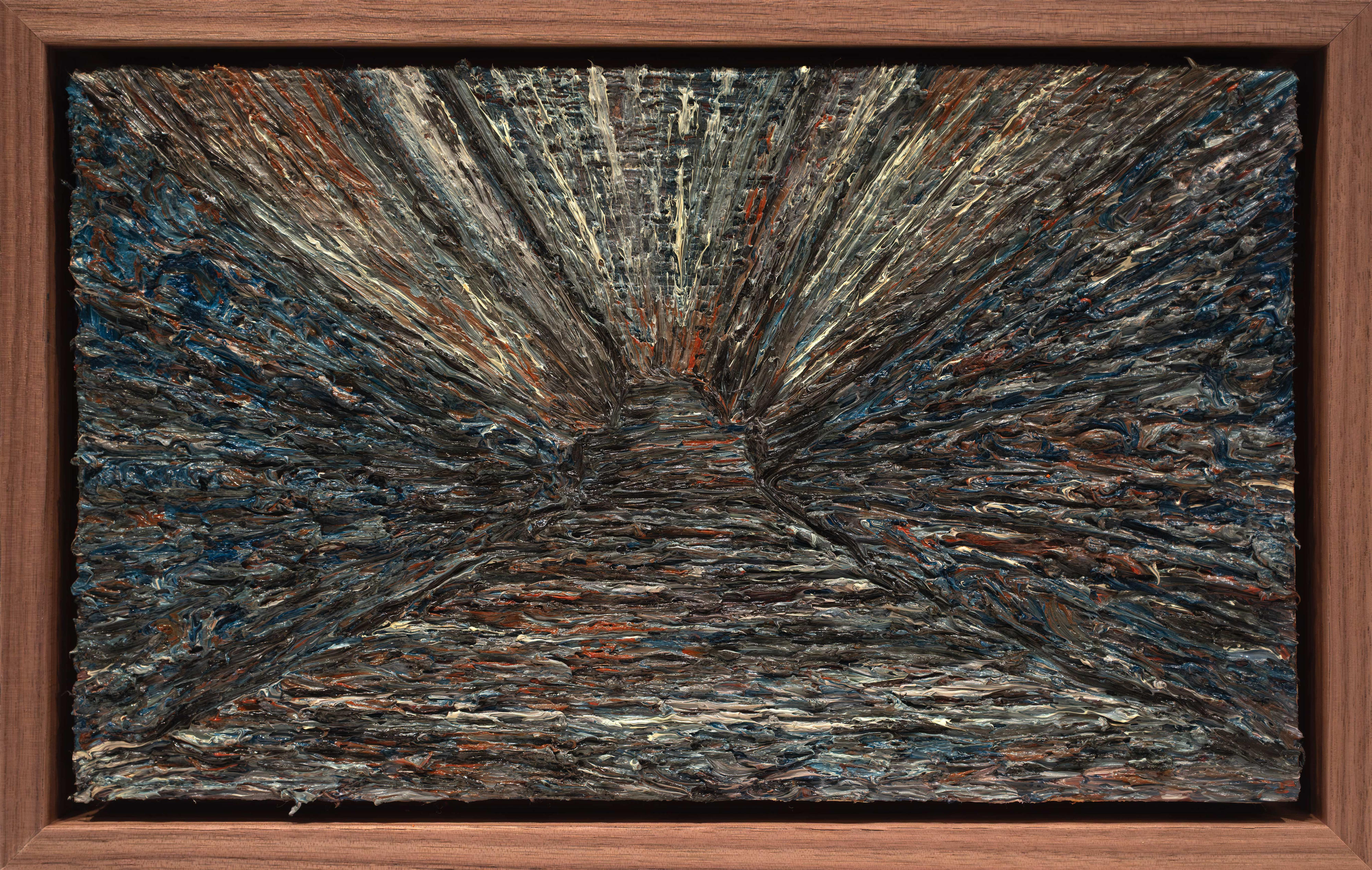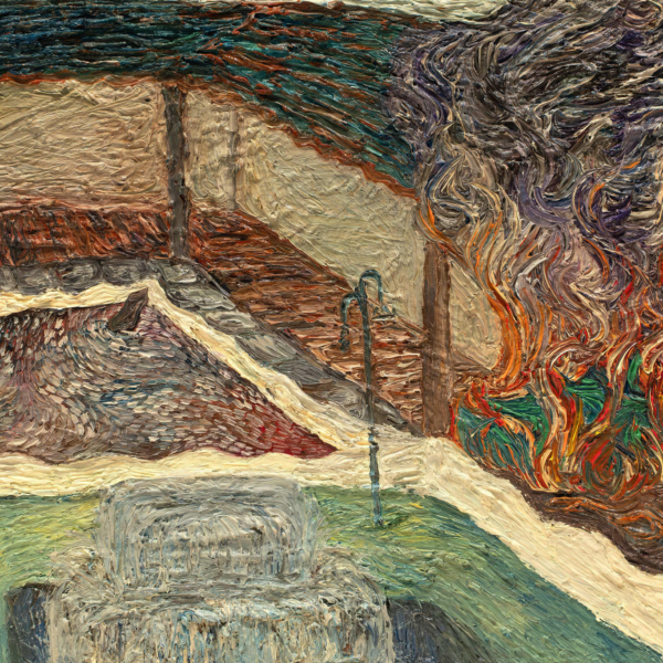 Through thick application of oil paint, Harvey repeatedly marks and removes layers of surface, allowing texture and atmosphere to build over time. This process produces dense, tactile paintings with a sensory charge—details emerge and disappear as the surface obscures and reveals, creating a sense of strangeness and quiet intensity within the image.