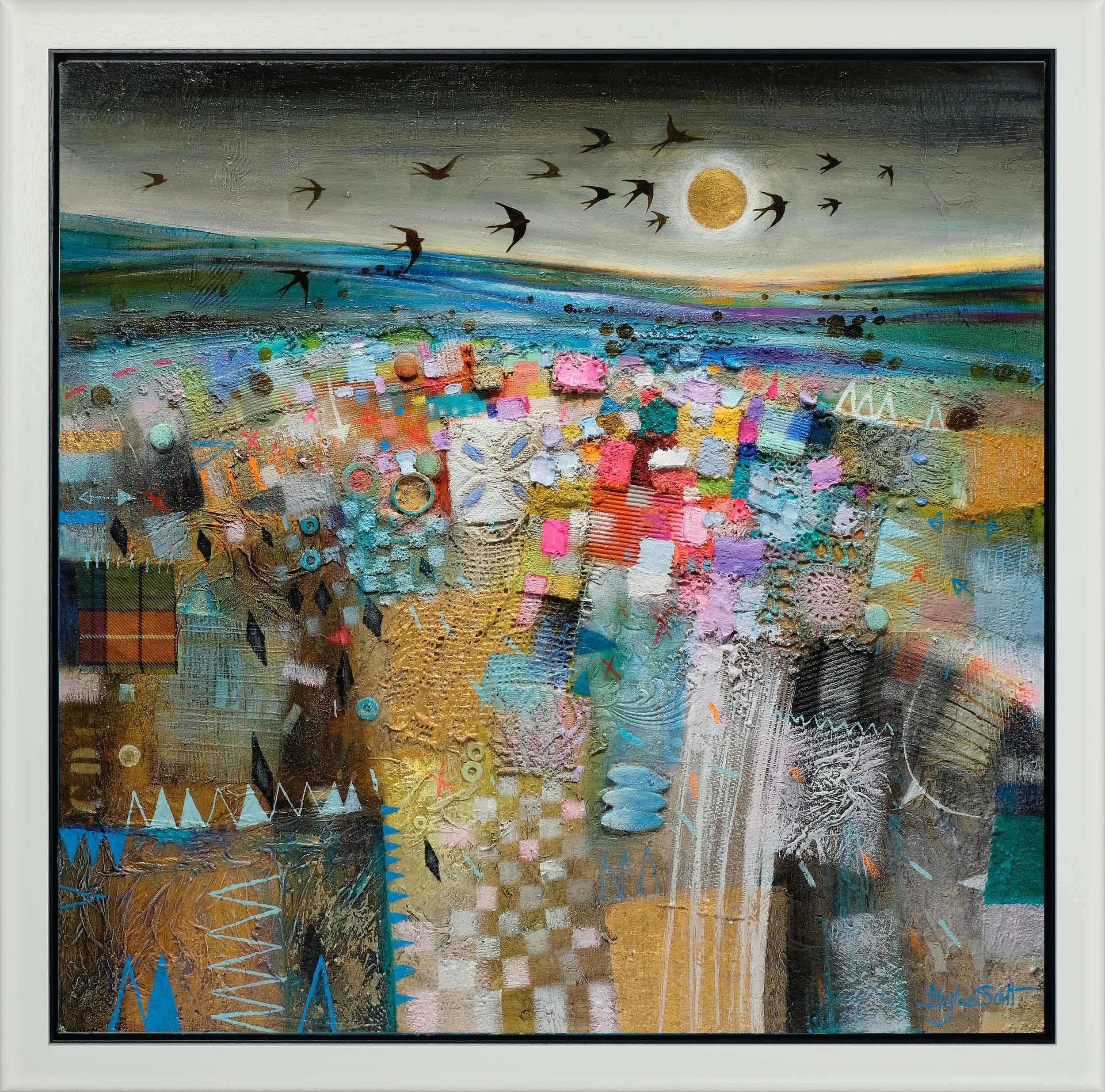 Acrylic and `Mixed Media with Collage and 24k Gold Leaf Framed Size: 86 x 86 cm 86 86