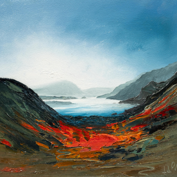 Linda’s inspiration comes from the drama of the natural world she sees all around her. She enjoys painting bold interpretations of the landscapes she has explored in Scotland and France. She approaches these locations with a fresh perspective in order to create the dramatic compositions she is known for.