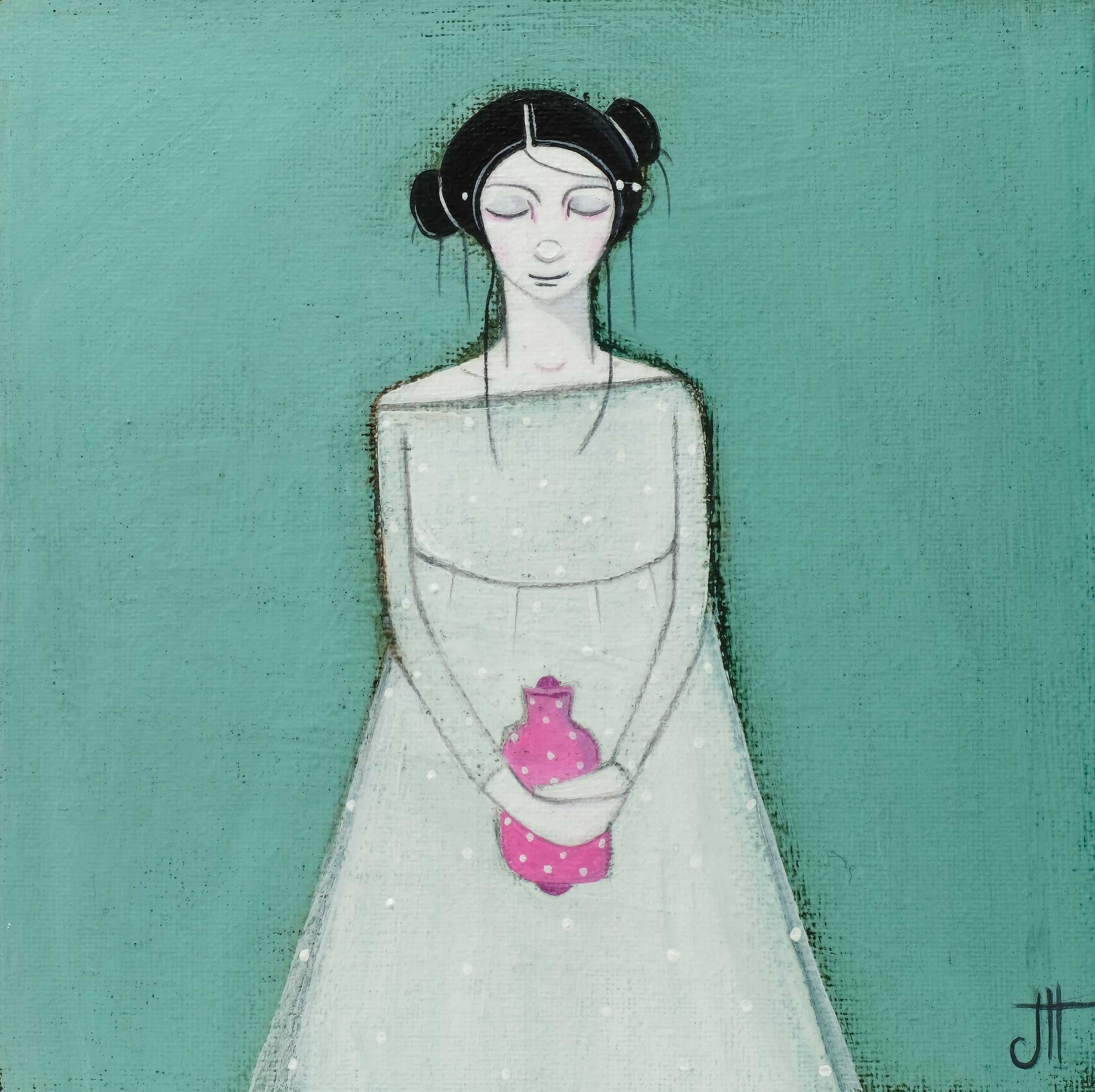 Rural life in Scotland has informed a great deal of Jackie’s work, and she considers many of her paintings to have an autobiographical element, with her environment being a constant source of inspiration. Translating daily observations into quirky scenes allows her to explore the notion of appreciating and living in the moment.