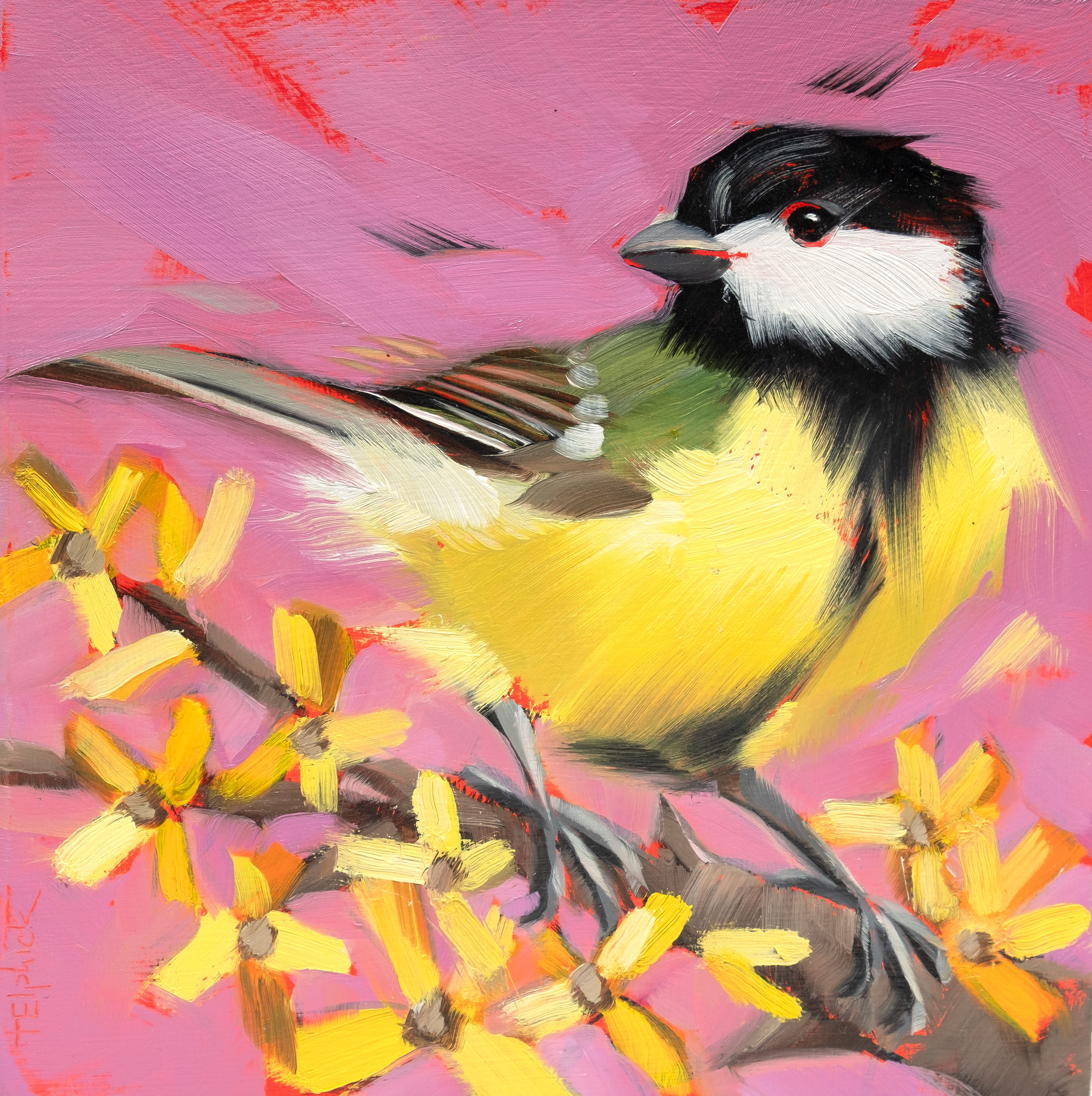 Great Tit on Magenta