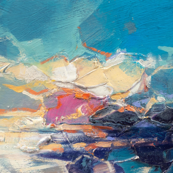With a palette that communicates both his emotional response to the scene and its atmosphere, Scott vigorously applies various layers to the canvas, sometimes blocking the composition in with spray paint before working with a combination of acrylic and oils to represent the inherently fast changing light that illuminates the Scottish landscape. These bold and often elevated interpretations of familiar scenery ensure that the viewer can’t help but see the world as Scott does, with a great deal of optimism and hope.